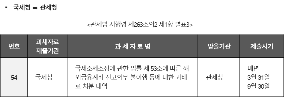 1. 관세청과 국세청의 상호 자료 교환 근거 법령