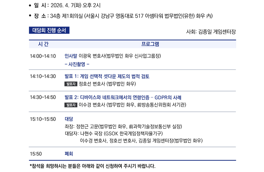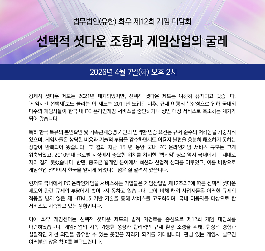 제12회 게임대담회 : 선택적 셧다운 조항과 게임산업의 굴레